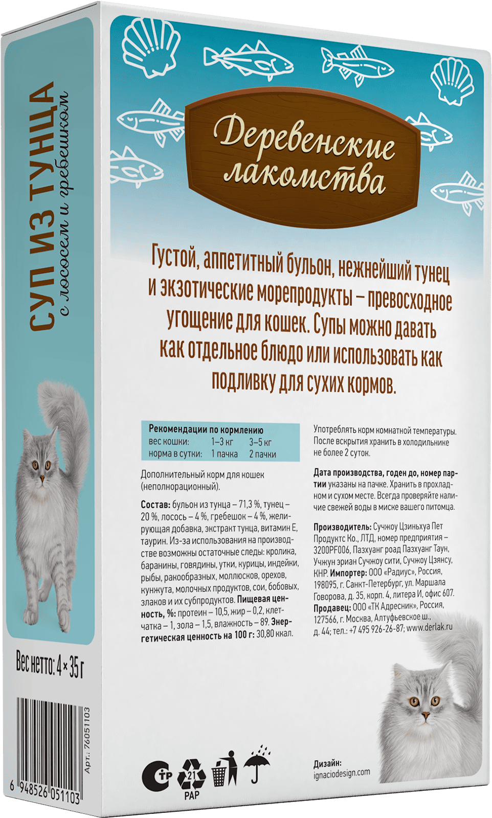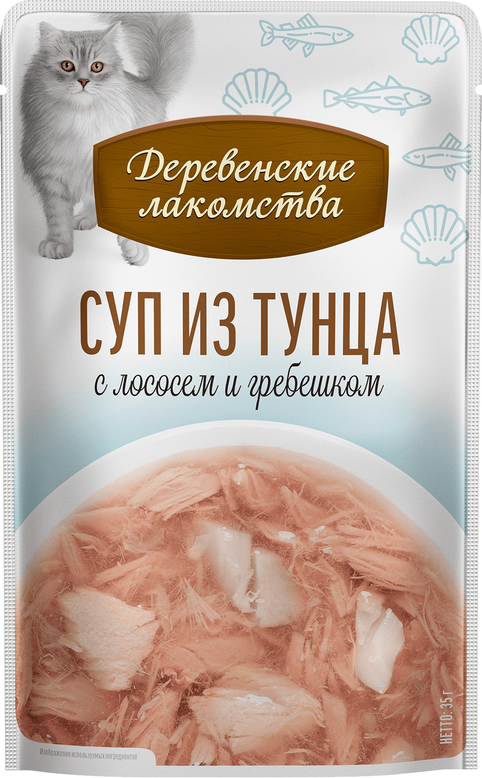 Суп из тунца с лососем и гребешком идеально подходит для кошек всех пород и возрастов.