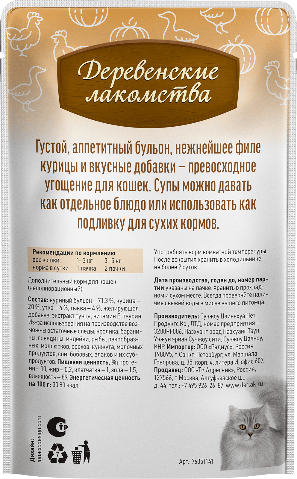 Густой бульон способствует поддержанию водного баланса в организме кошки, он обволакивает кусочки мяса и тыквы, делая блюдо невероятно аппетитным. Суп можно использовать как самостоятельное блюдо, так и добавлять к сухому корму для повышения его привлекательности и улучшения усвояемости. Суп для кошек от «Деревенских лакомств» — это не просто еда, это выражение вашей любви и заботы о вашем пушистом друге.