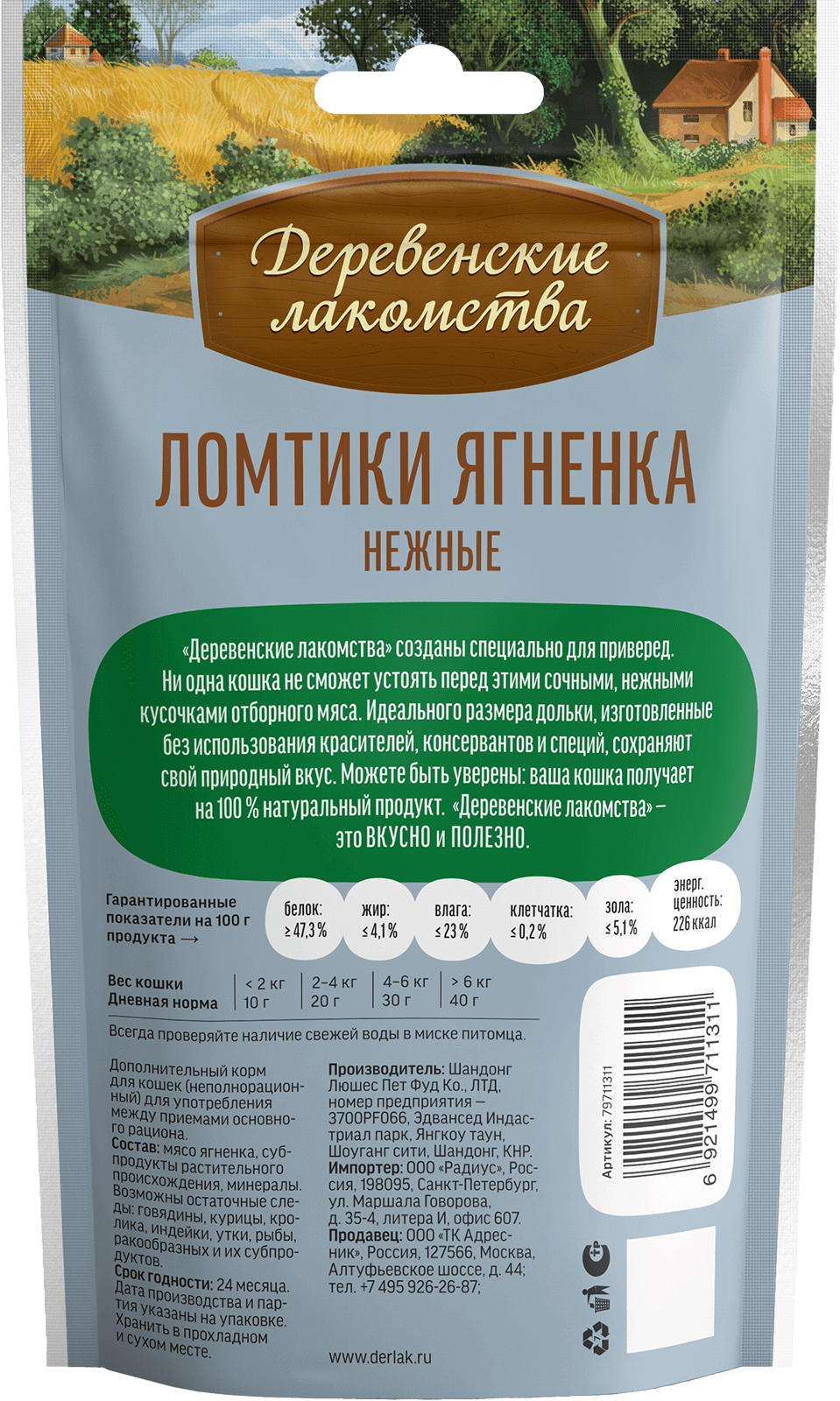 Состав: мясо ягненка, субпродукты растительного происхождения, минералы.