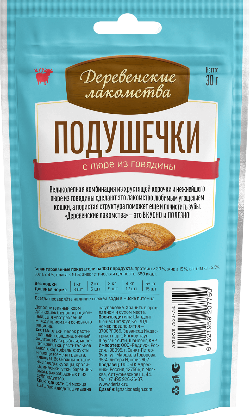 Состав: злаки, белок растительный, говядина, яичный желток, мука рыбная, молотая креветка, растительное масло, картофель, фрукты и овощи (семена граната, клюква).