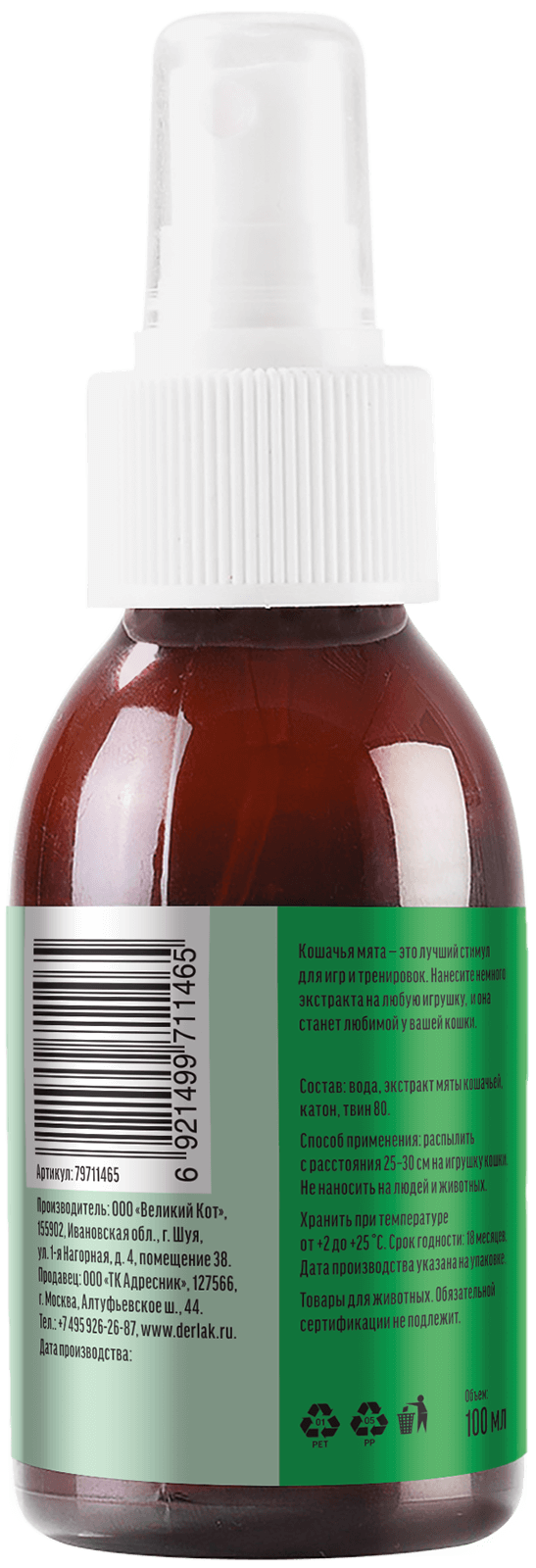 Состав: вода, экстракт мяты кошачьей, катон, твин 80.