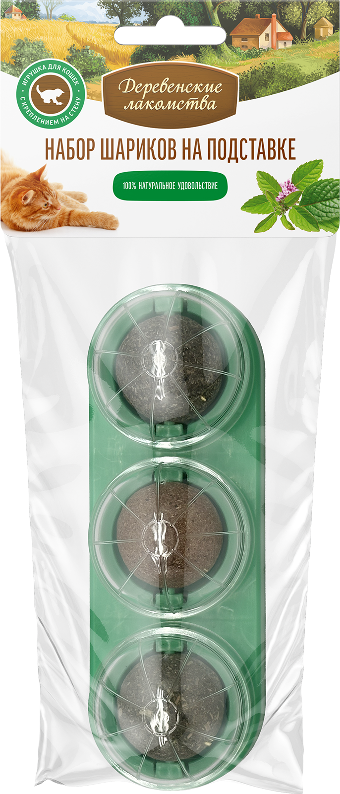 Вкусные и полезные шарики улучшают настроение кошки, полезны для пищеварения, помогают чистить зубы и освежают дыхание. Подставка с набором легко крепится к любой ровной поверхности. Диаметр каждого шара 3 см. Эту игрушку можно даже съесть. Она состоит только из натуральных ингредиентов. Ваша кошка получит огромное удовольствие.