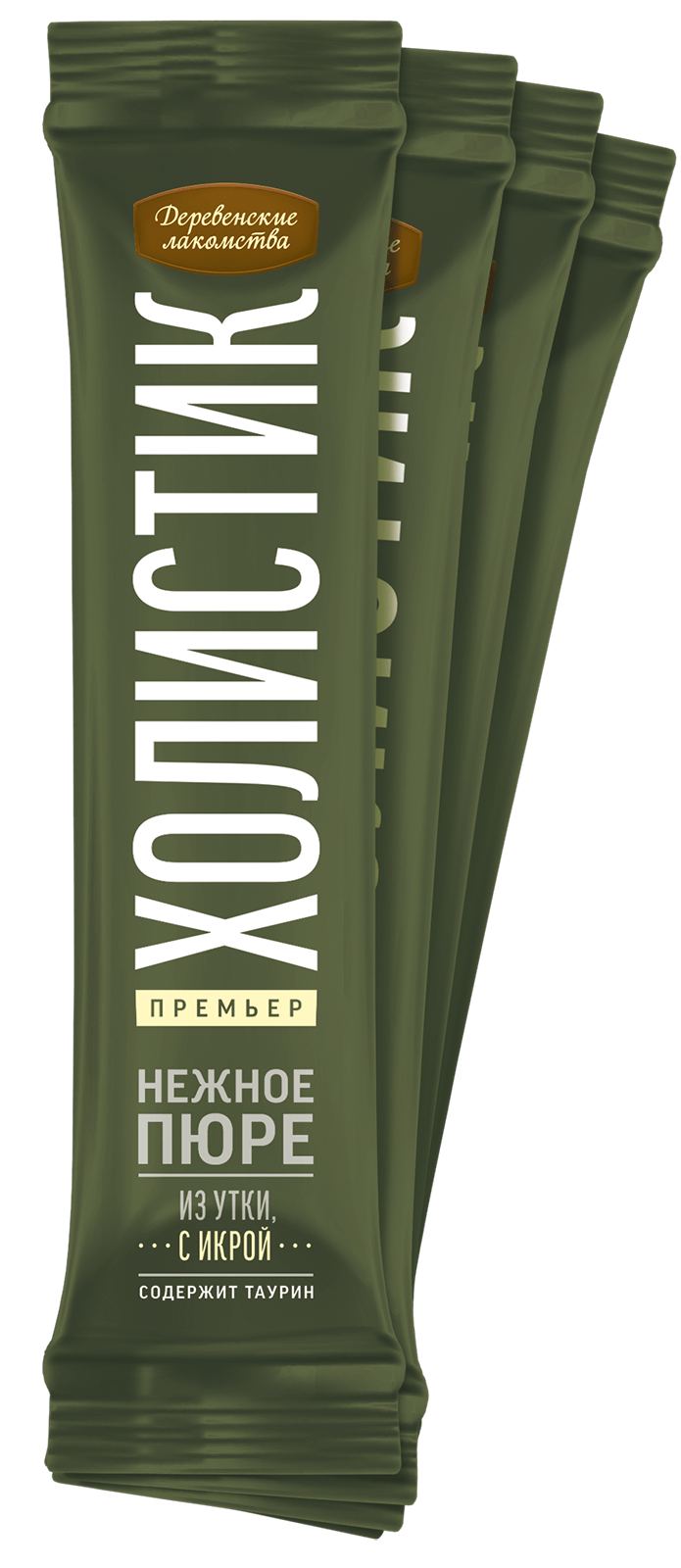 Попробуйте наши изысканные десерты «Холистик Премьер». Нежнейшее пюре из отборного мяса утки, с добавлением настоящего деликатеса — икры летучей рыбы, порадует вашу кошку ярким, насыщенным вкусом. Удобная упаковка позволит вам проводить вместе незабываемые минуты, угощая вашего любимца прямо из пакетика.