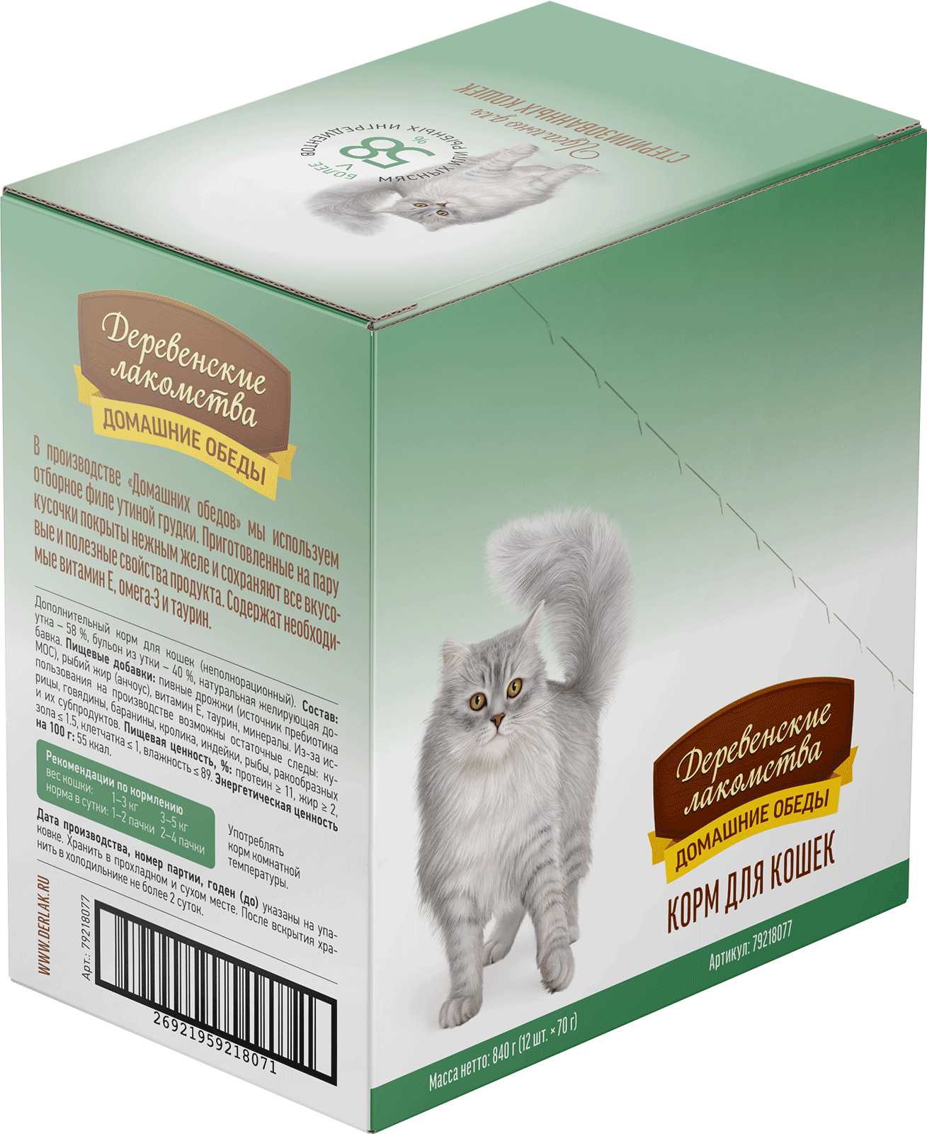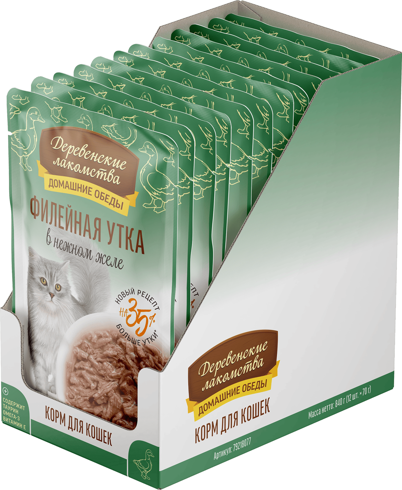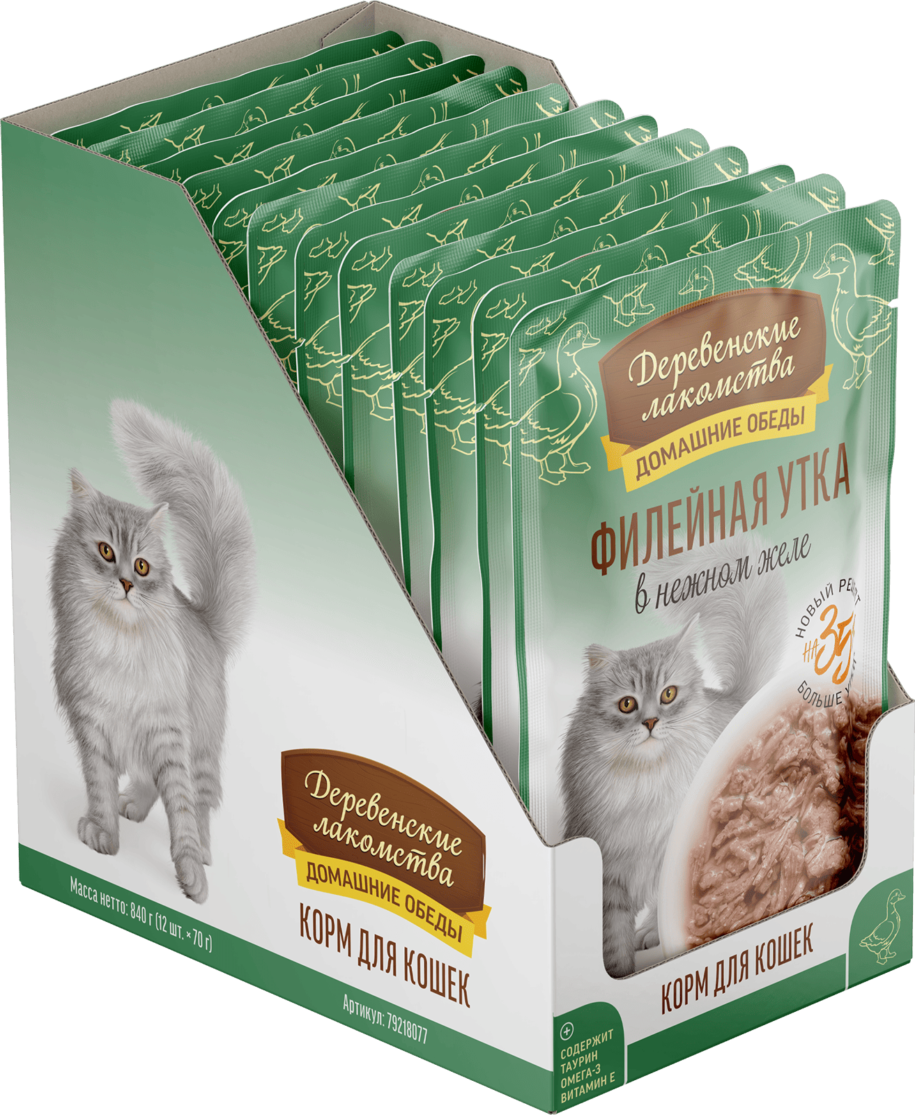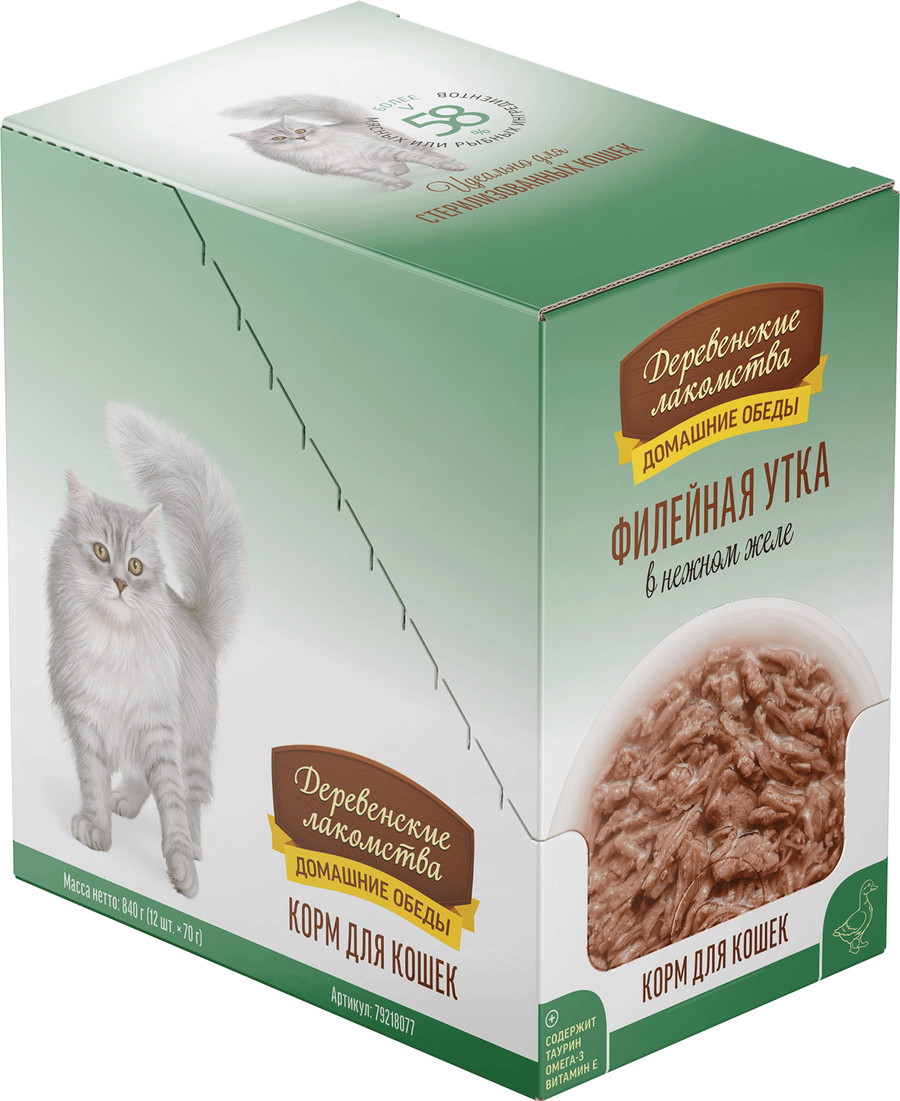 Консервированный влажный корм для кошек серии «Деревенские лакомства — Домашние обеды» — деликатес, созданный на основе отборного утиного филе, приготовленного на пару. Ваш пушистый гурман по достоинству оценит это высокое кулинарное искусство. Легкая текстура желе облегчает процесс потребления, делая этот продукт идеальным даже для самых привередливых питомцев.
