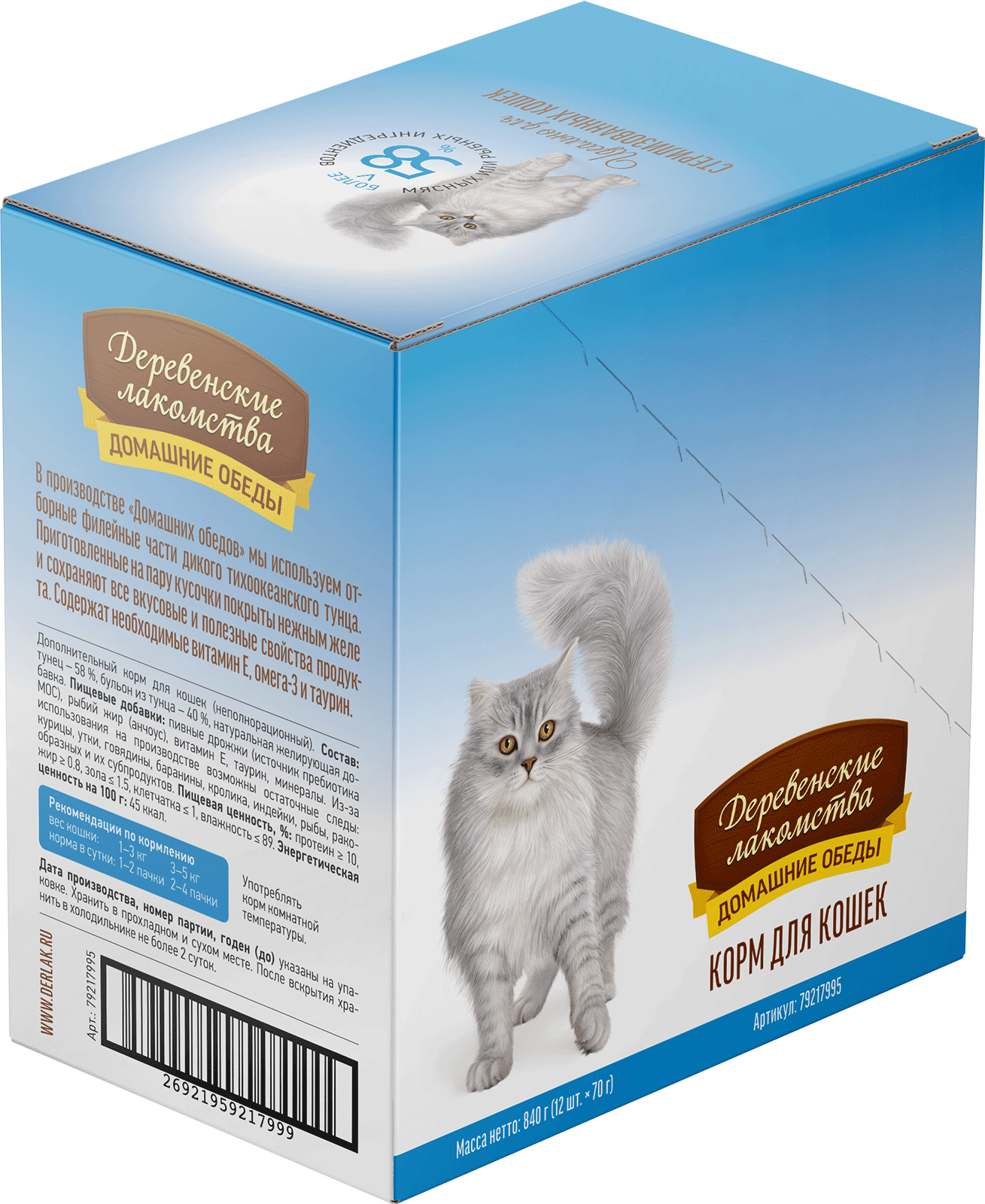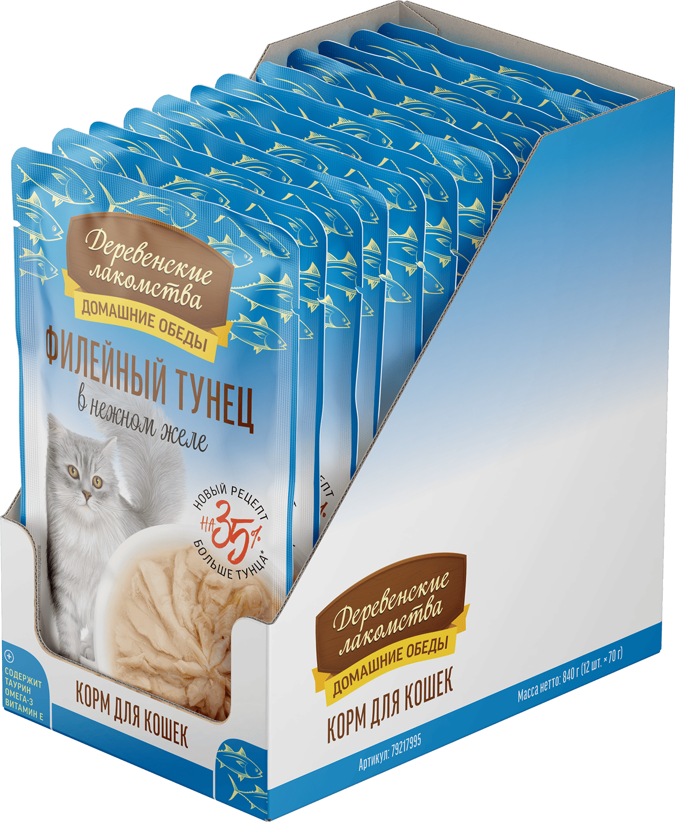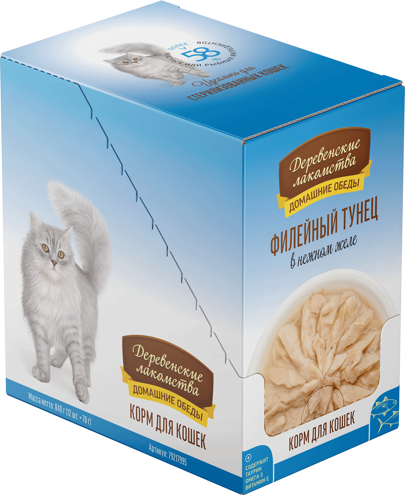 Консервированный влажный корм для кошек серии «Деревенские лакомства — Домашние обеды» из отборного филе дикого тихоокеанского тунца приготовлен на пару, что позволяет максимально сохранить все ценные питательные вещества, включая Омега-3 жирные кислоты, необходимые для здоровья кожи и блестящей шерсти вашей кошки. Легкая текстура желе облегчает процесс потребления, делая этот продукт идеальным даже для самых привередливых питомцев. Побалуйте своего любимца изысканным и полезным лакомством!