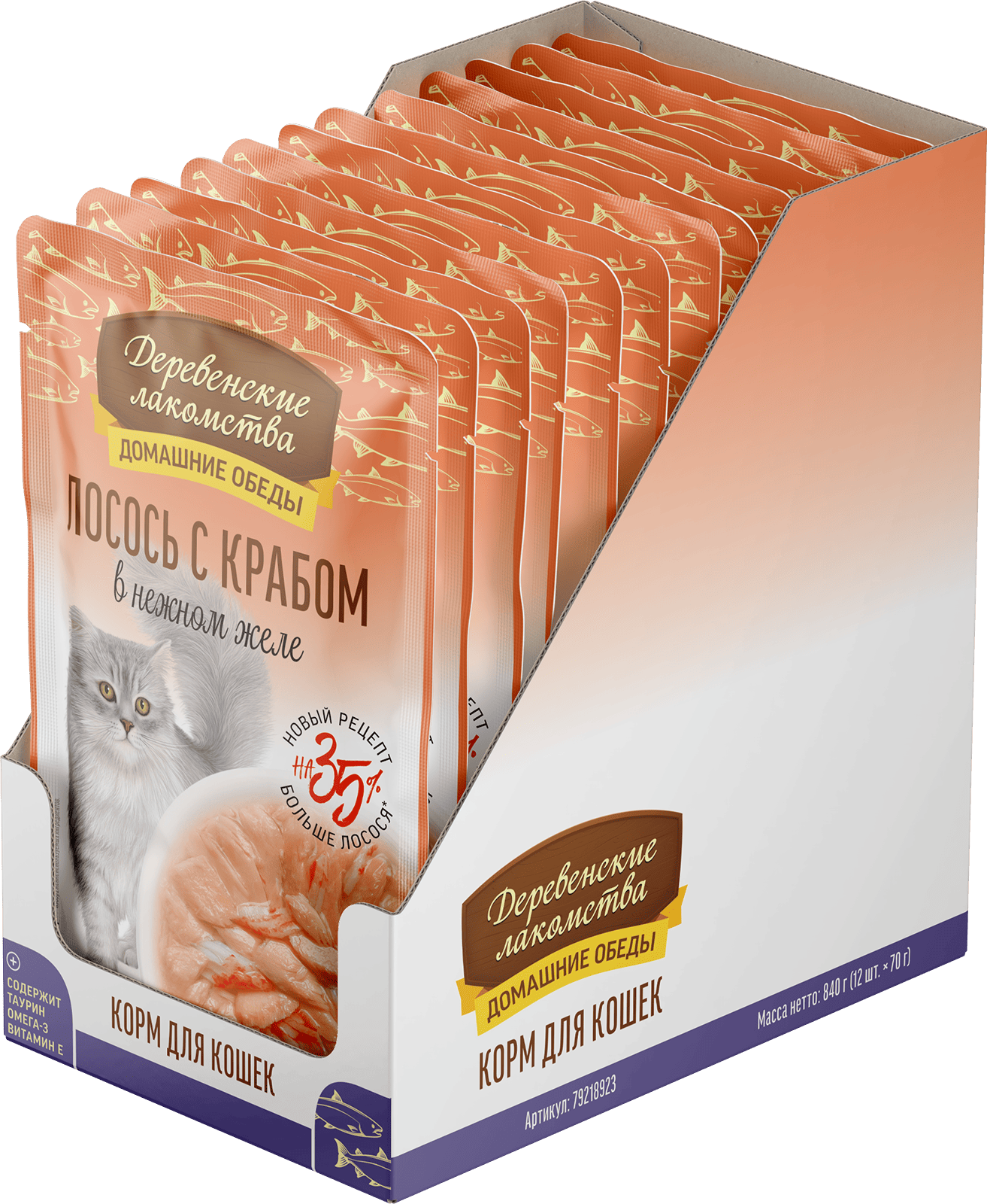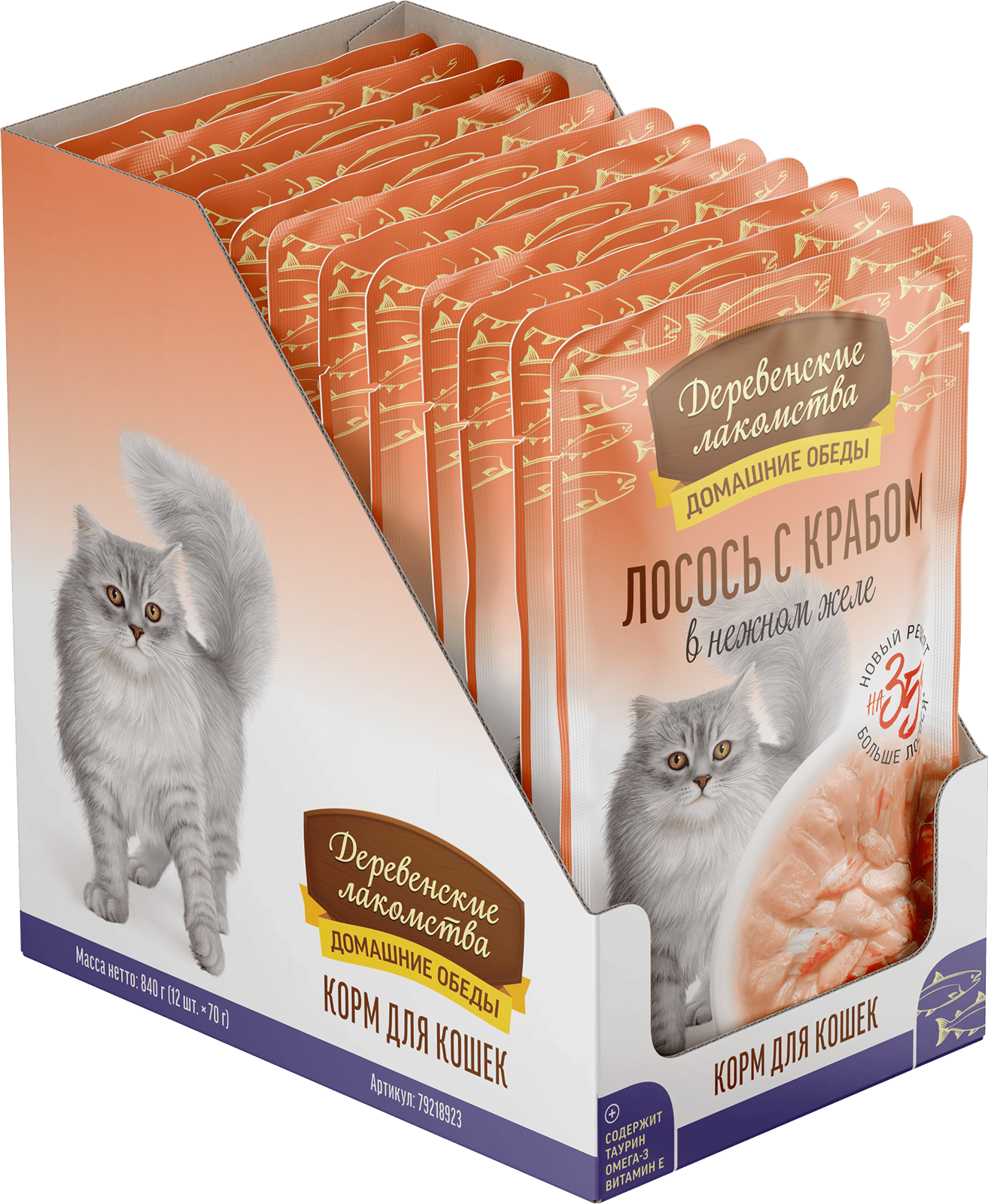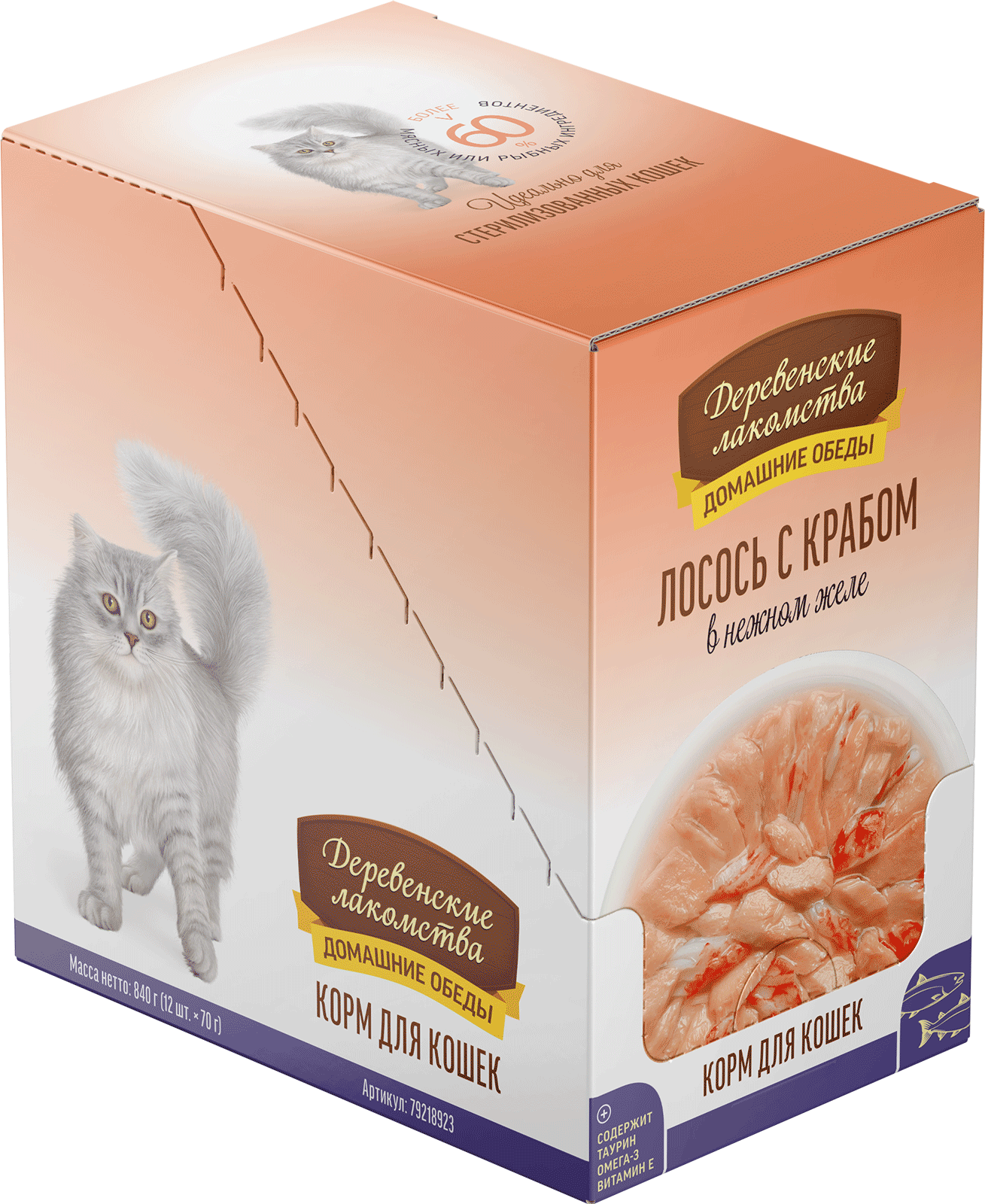 Консервированный влажный корм для кошек серии «Деревенские лакомства — Домашние обеды» — изысканный морской деликатес, созданный с любовью и заботой о вашем пушистом друге. Угощение не только порадует вашего кота, но и внесет разнообразие в его рацион. Бережно отобранные ингредиенты, без добавления консервантов и красителей, делают это блюдо безопасным и приятным для вашего любимца. Легкая текстура желе облегчает процесс потребления, делая этот продукт идеальным даже для самых привередливых питомцев.