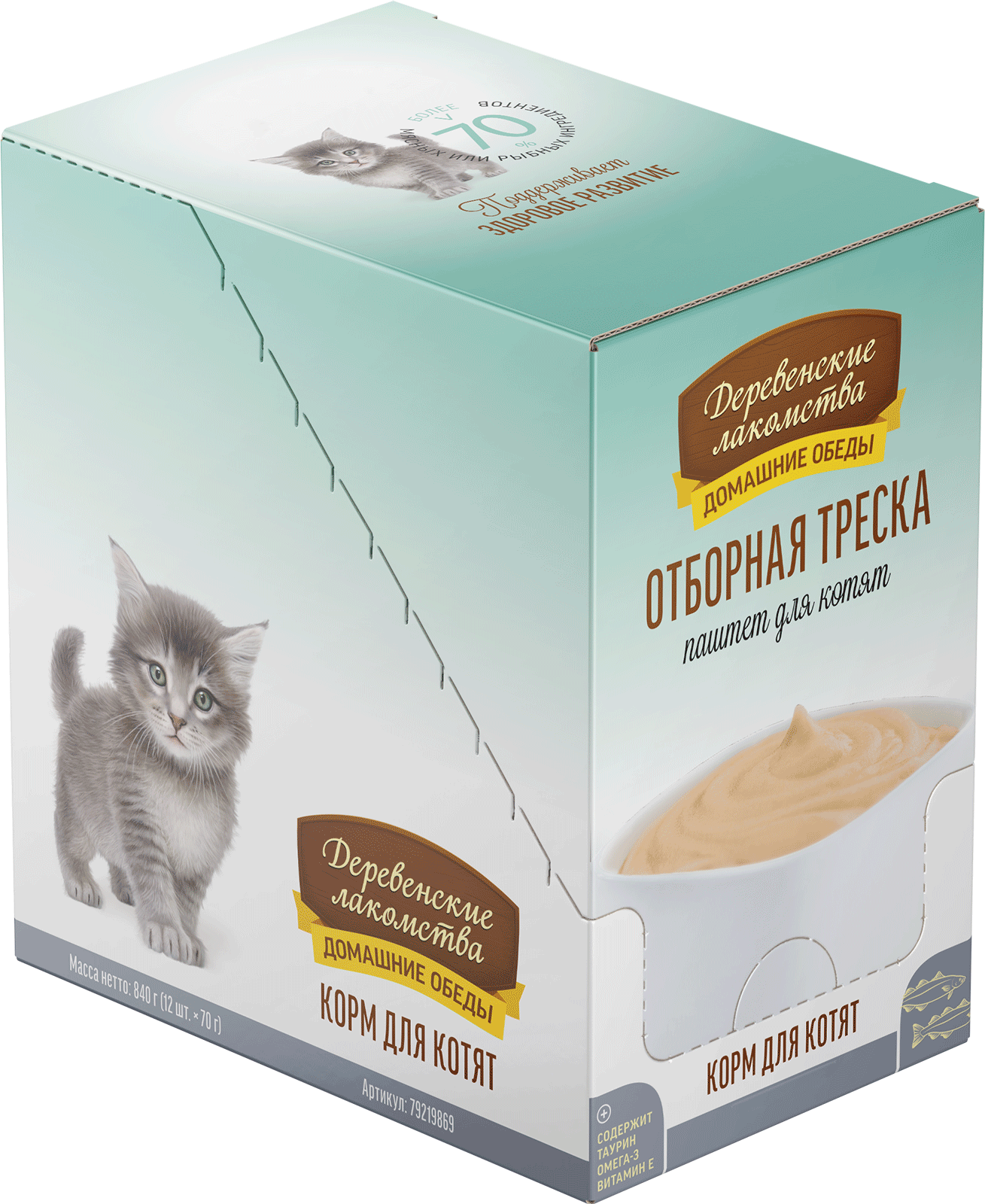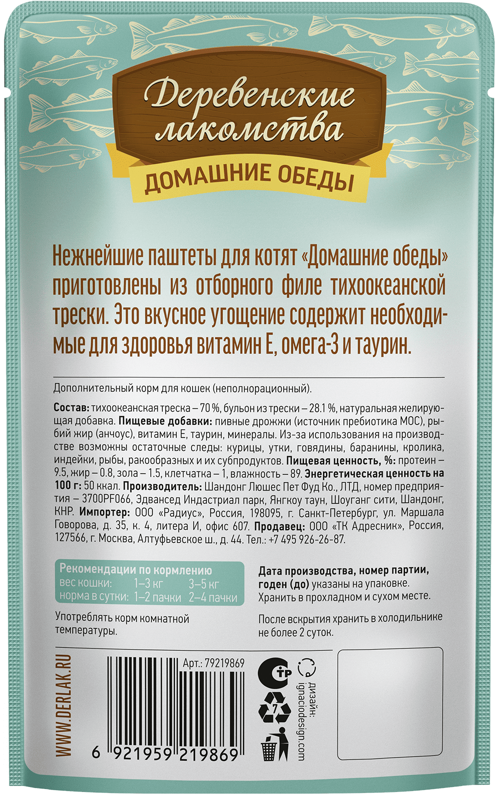 Состав: тихоокеанская треска 70%, бульон из трески 28%, натуральная желирующая добавка.