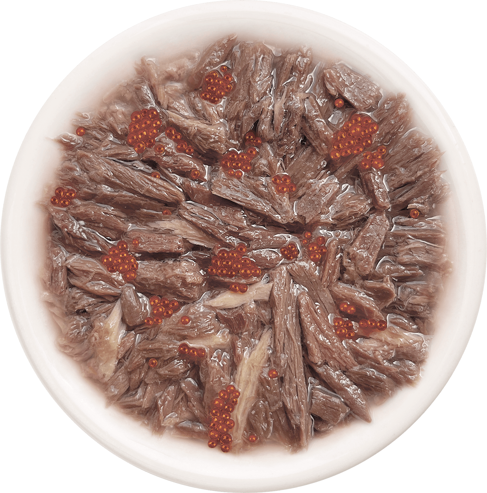 Состав: тунец 60 %, бульон из тунца 34 %, икра летучей рыбы 4 %, натуральная желирующая добавка.