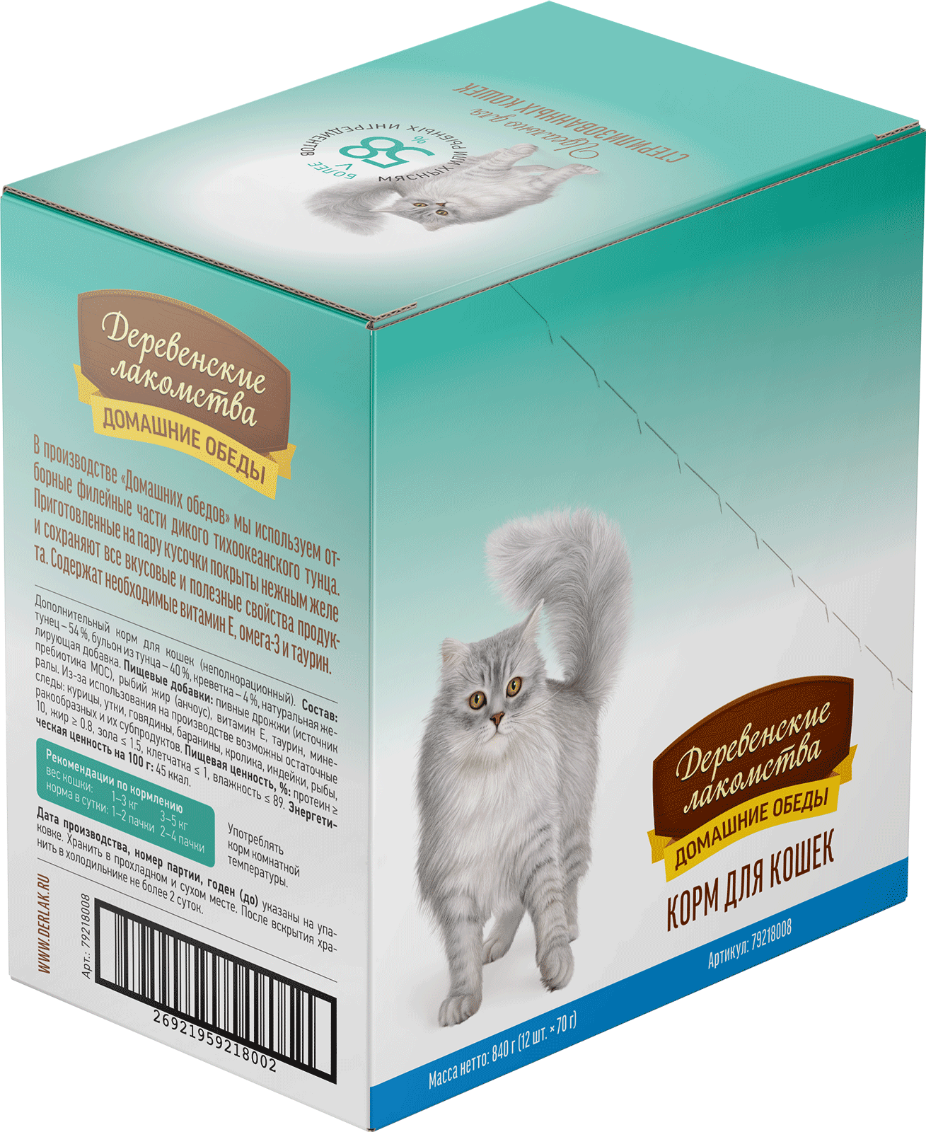 Консервированный влажный корм для кошек серии «Деревенские лакомства — Домашние обеды» приготовленный на пару из кусочков дикого тихоокеанского тунца с нежными креветками — еда для настоящих аристократов! Витамины, минералы и таурин — это лишь приятное дополнение к изысканному блюду для котов и кошек всех пород. Легкая текстура желе облегчает процесс потребления, делая этот продукт идеальным даже для самых привередливых питомцев. Побалуйте своего любимца изысканным и полезным лакомством!