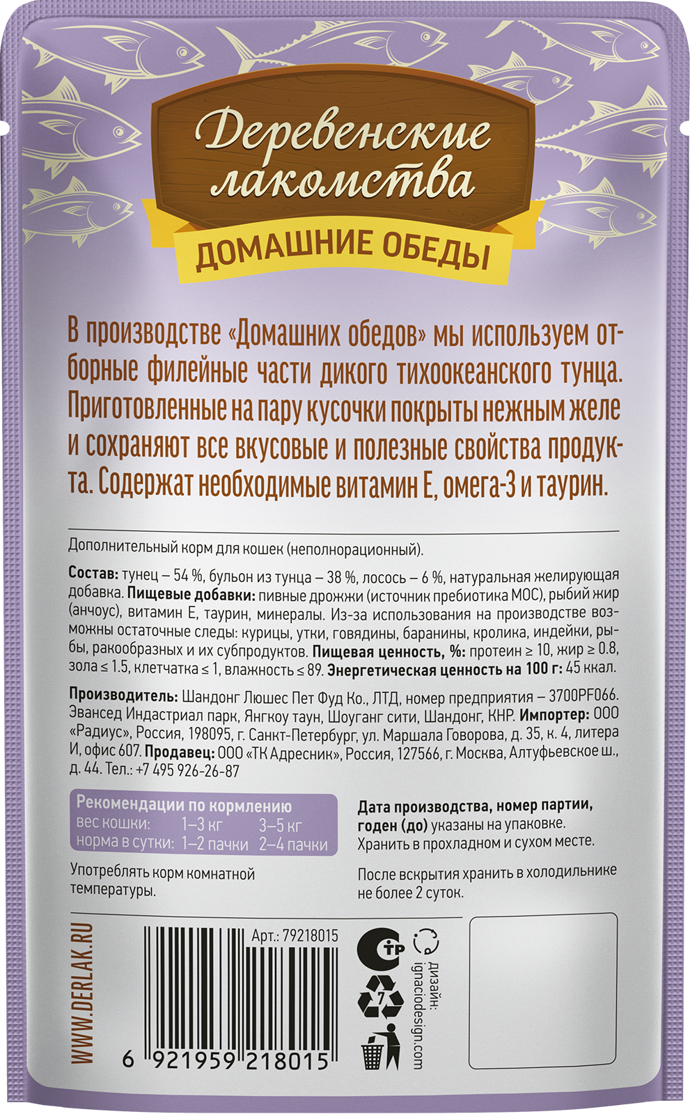 Состав: тунец 54%, лосось 6%, бульон из тунца 38%, натуральная желирующая добавка.