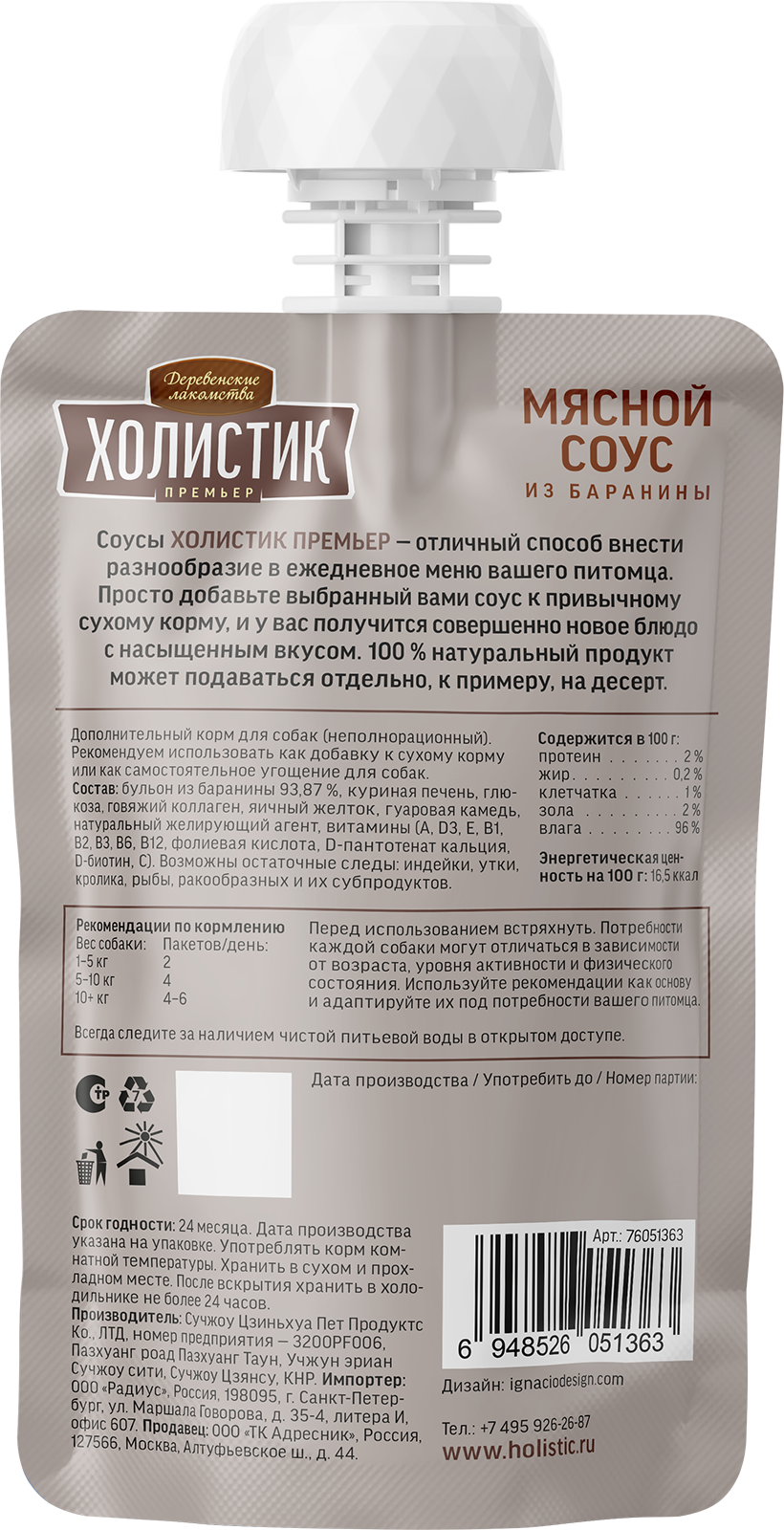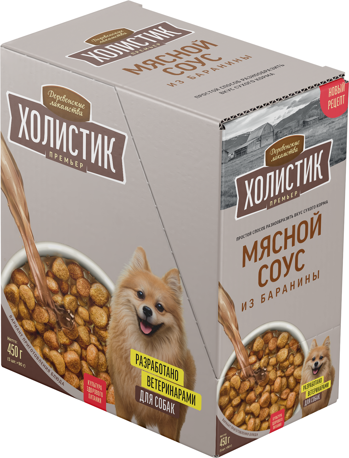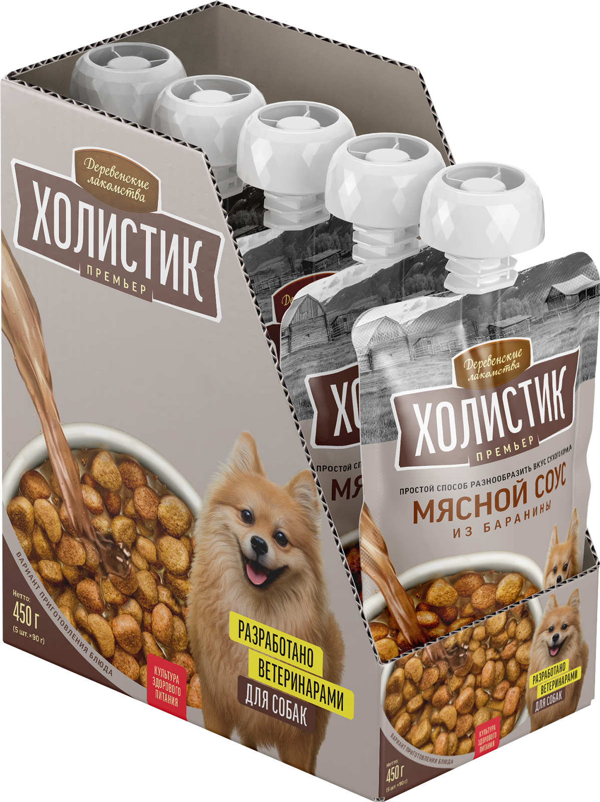 Соусы «Холистик Премьер» для собак помогут разнообразить вкус повседневного корма. Выберите мясной соус из баранины от «Деревенских лакомств», обильно полейте им сухой корм, и новое блюдо с ярким вкусом готово. 100 % натуральный продукт может подаваться отдельно, к примеру, на десерт.