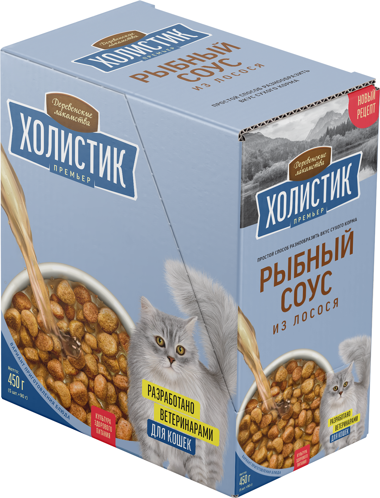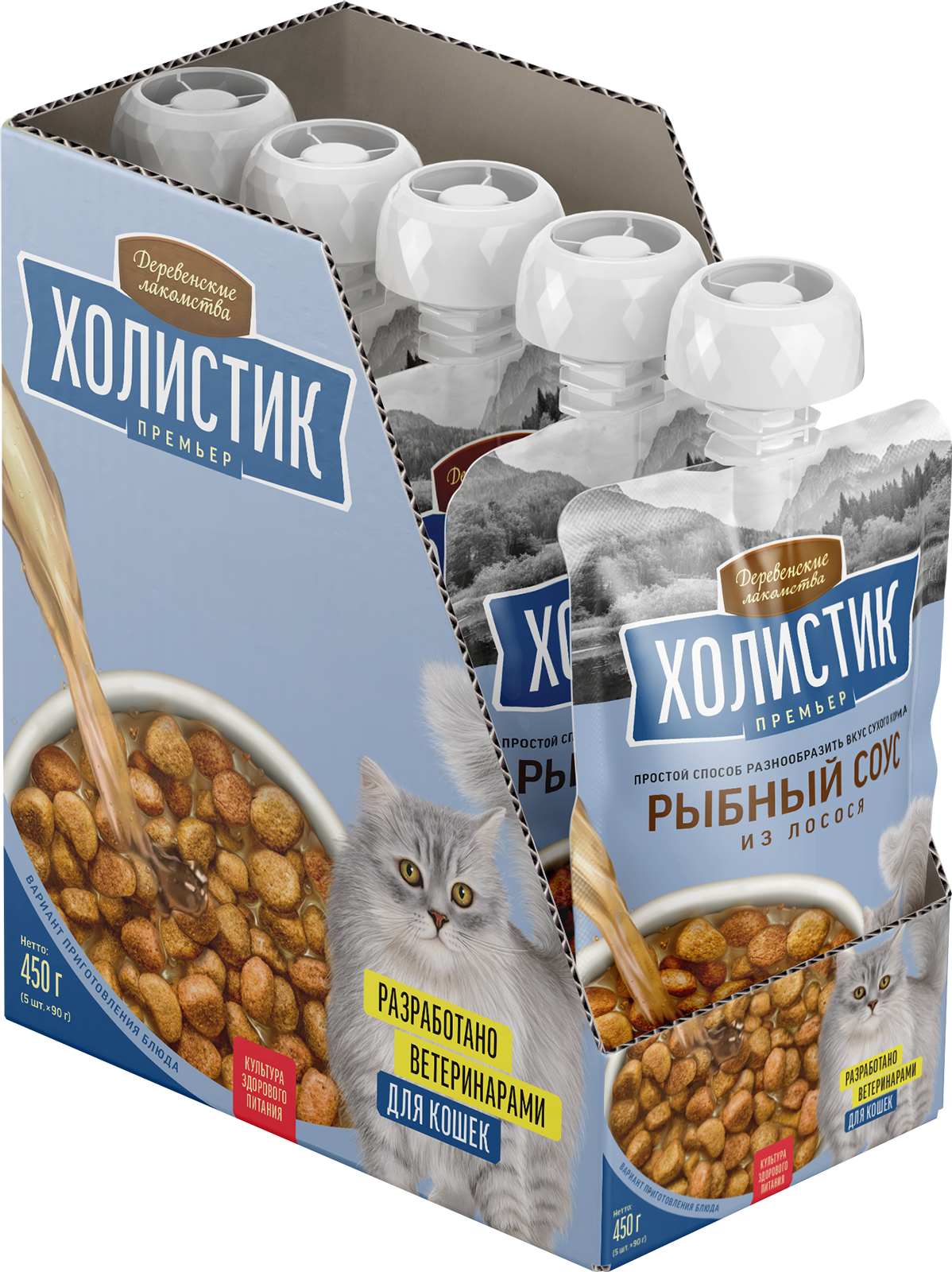 Соусы «Холистик Премьер» для собак помогут разнообразить вкус повседневного корма. Выберите рыбный соус из лосося от «Деревенских лакомств», обильно полейте им сухой корм, и новое блюдо с ярким вкусом готово. 100 % натуральный продукт может подаваться отдельно, к примеру, на десерт.