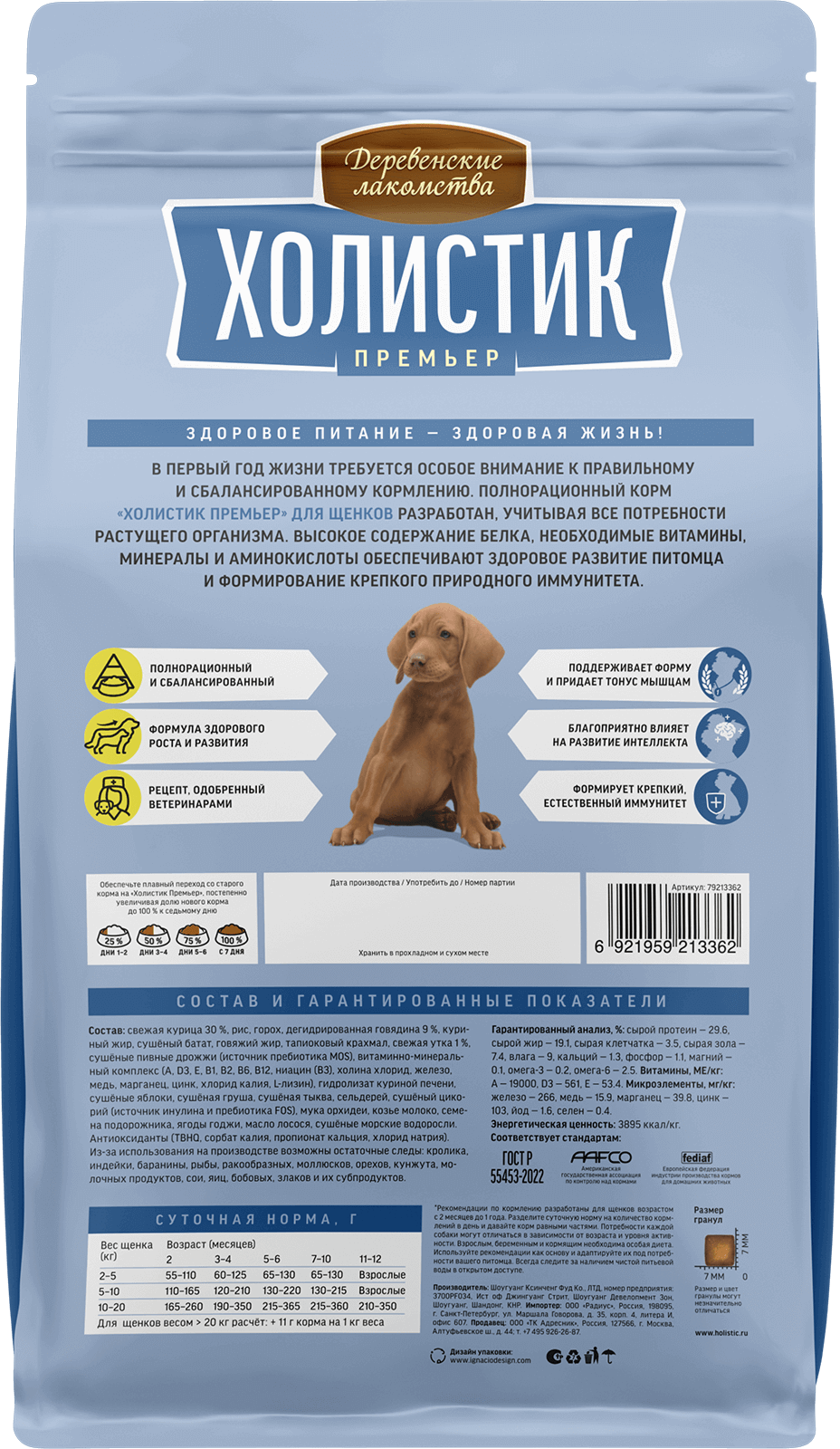 Из-за использования на производстве возможны остаточные следы: кролика, индейки, рыбы, ракообразных, моллюсков, орехов, кунжута, молочных продуктов, сои, яиц, бобовых, злаков и их субпродуктов.