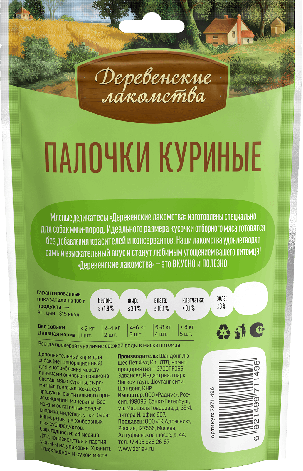 Состав: куриное мясо, сыромятная говяжья кожа, субпродукты растительного происхождения, минералы.