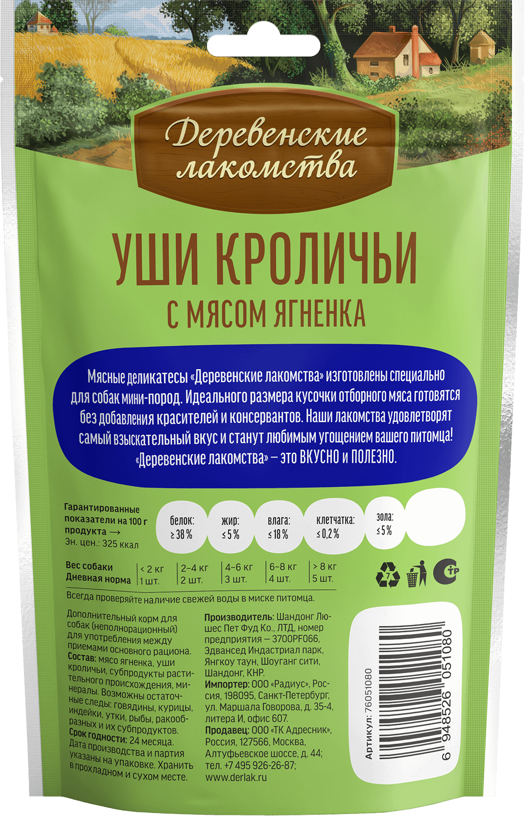 Состав: мясо ягненка, уши кроличьи, субпродукты растительного происхождения, минералы.