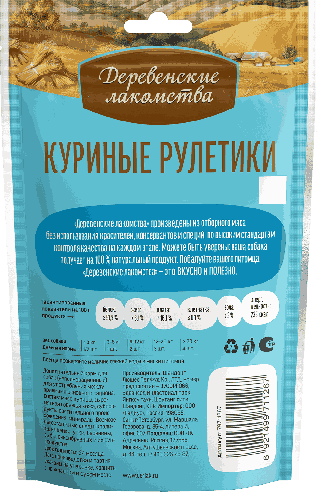 Состав: куриное мясо, сыромятная говяжья кожа.