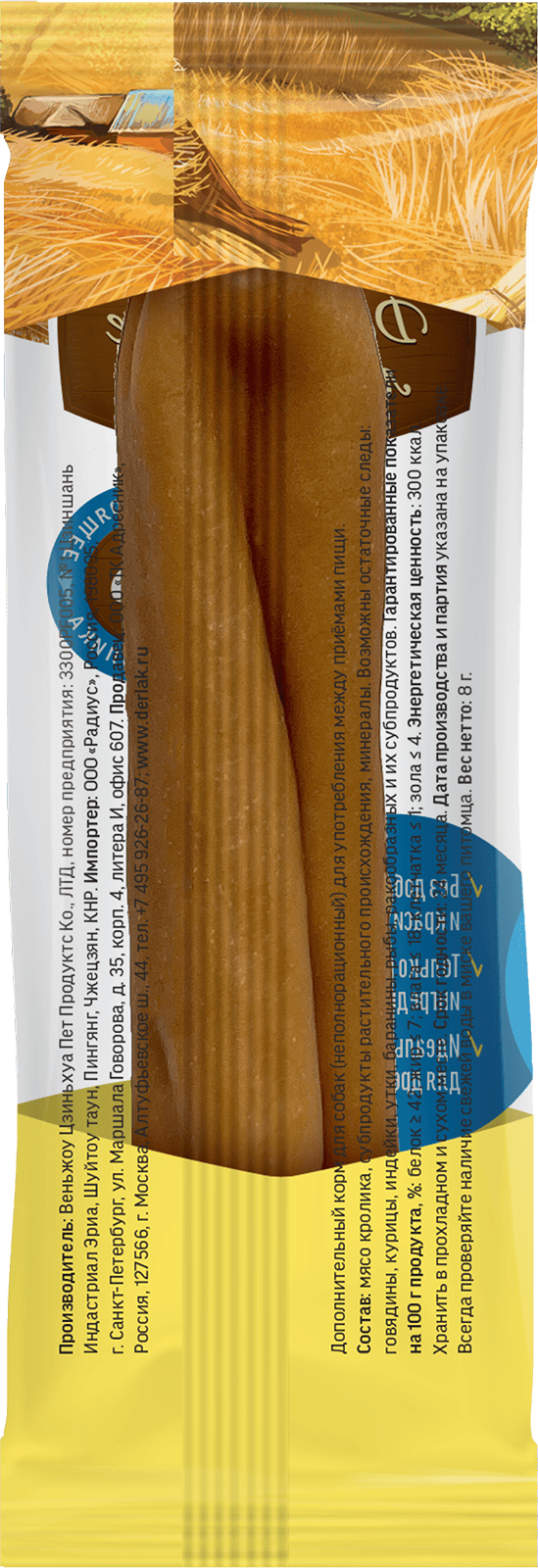Каждая колбаска упакована в индивидуальную герметичную обертку. Такая упаковка очень удобна, ведь в данном случае вы можете использовать угощение для поощрения животного так часто, как это необходимо именно вам, и не бояться, что оставшиеся в открытом пакете лакомства потеряют свои свойства. Колбаски останутся свежими, сочными, очень вкусными и полезными не протяжении всего срока годности.