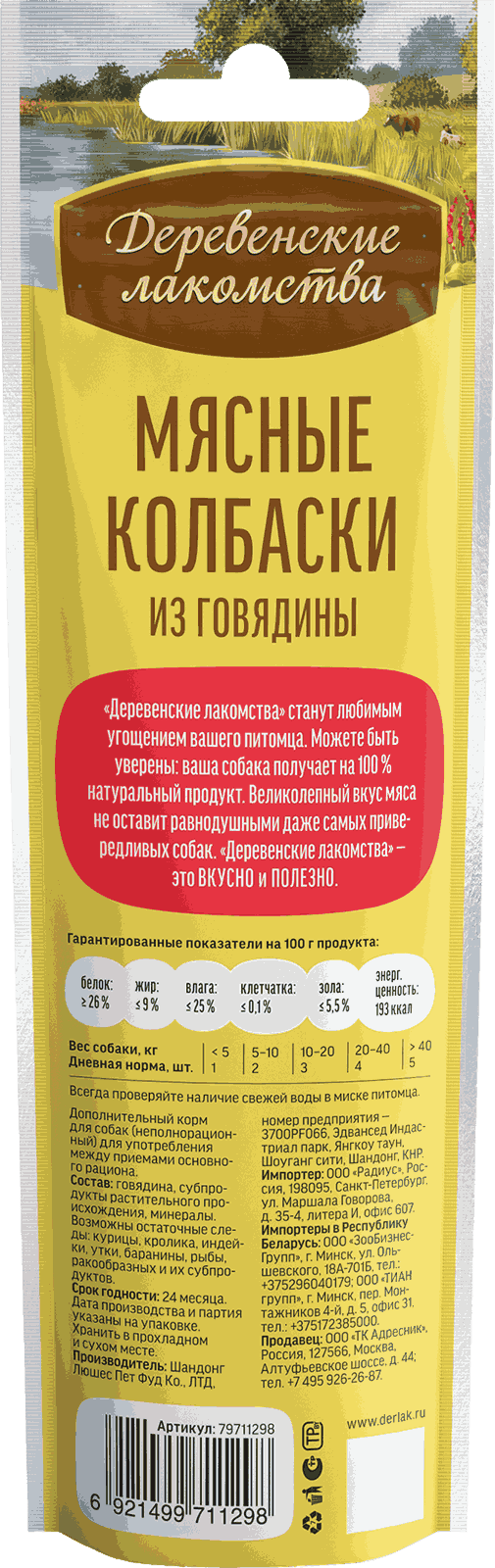 Колбаски из свежайшей говядины легко ломаются на маленькие кусочки и подойдут для угощения и поощрения во время тренировки питомца. Отличное лакомство для взрослых собак средних и больших размеров.