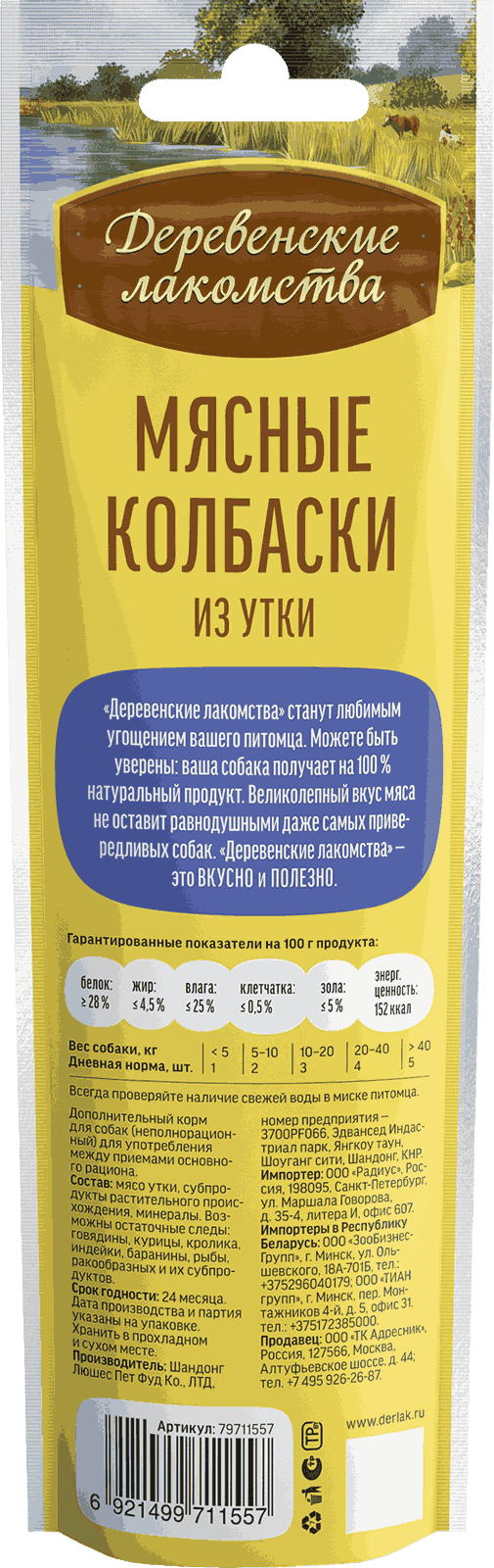 Состав: мясо утки, кукурузный крахмал.