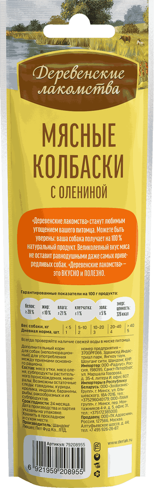 Натуральное лакомство с настоящей олениной — богатейший источник животного белка. Эти мясные колбаски насытят организм энергией, улучшат аппетит и станут любимым угощением вашего питомца. Великолепный вкус мяса не оставит равнодушными даже самых привередливых собак.