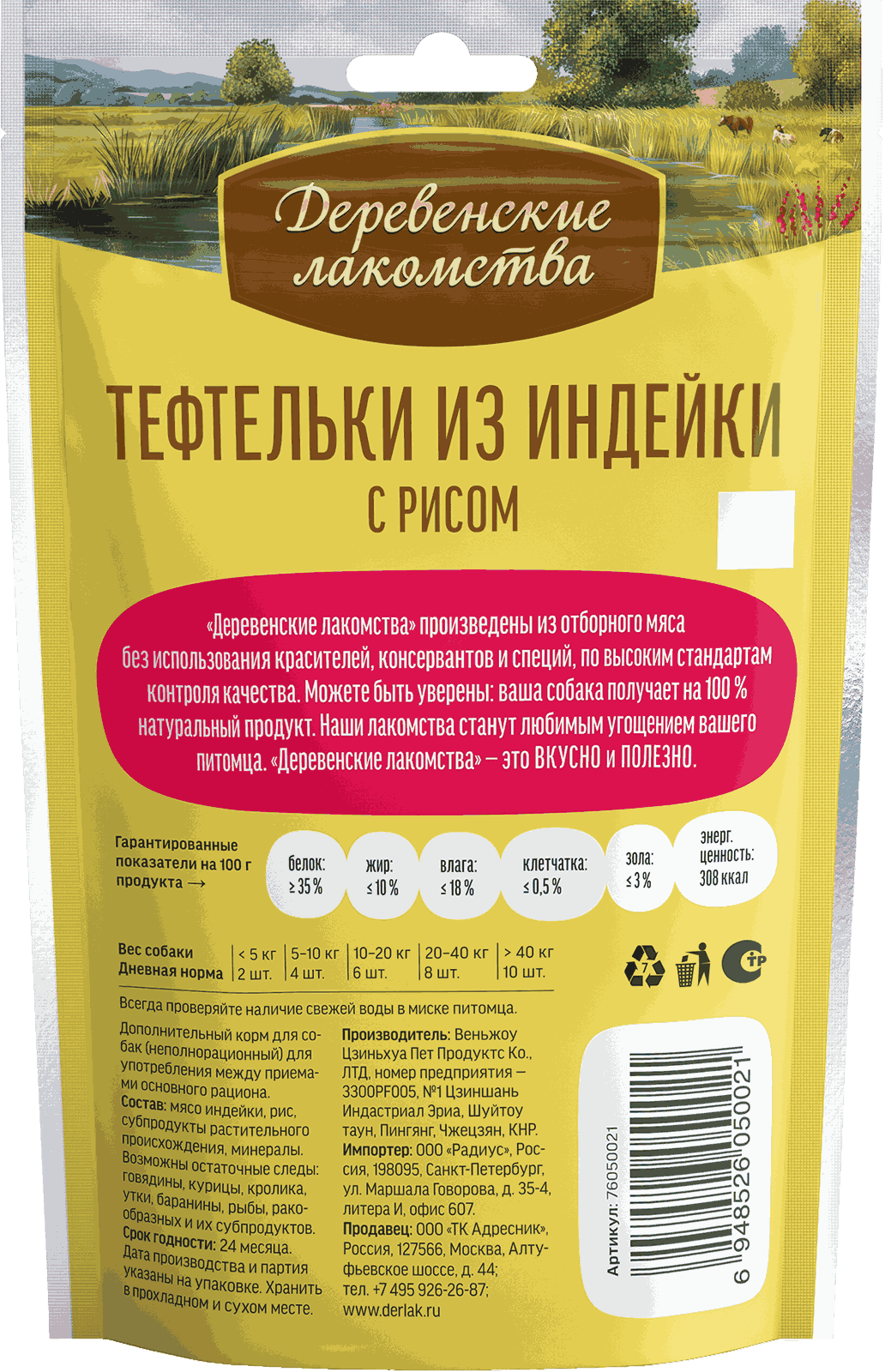 Состав: мясо индейки, рис.