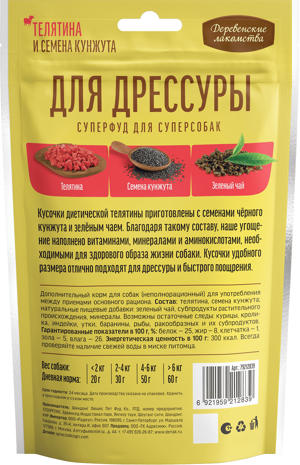 Натуральное мясное лакомство создано специально для дрессуры собак. Кусочки телятины здесь обогащены семенами кунжута и зеленым чаем. Это лакомство богато витаминами, минералами и аминокислотами, необходимыми для хорошего здоровья собаки.