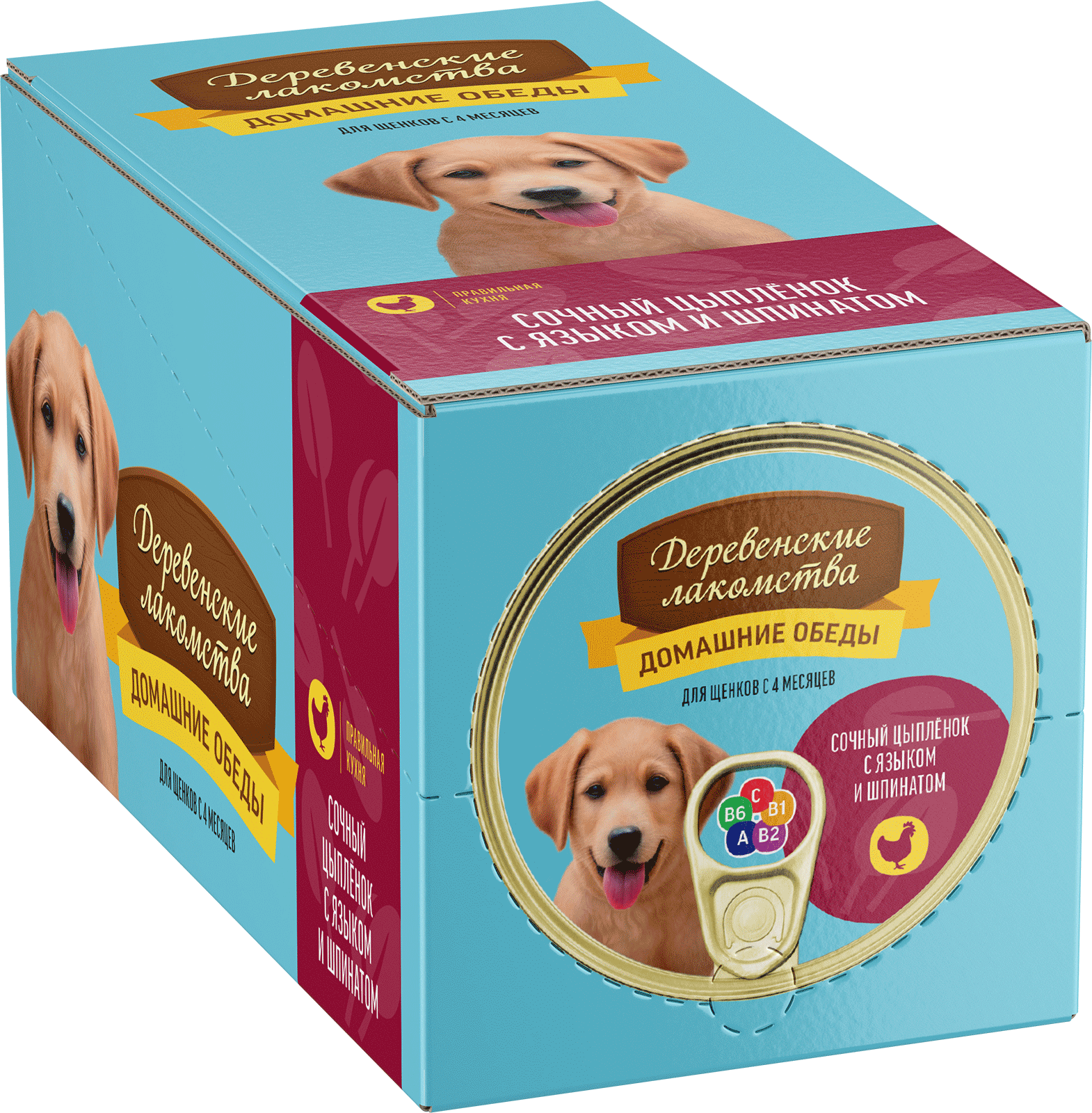 Вот так можно сделать полезное вкусным! Комбинация сочного цыплёнка и говяжьего языка поможет незаметно проглотить и полезный шпинат. С такими обедами ваш щенок вырастет здоровым и крепким.